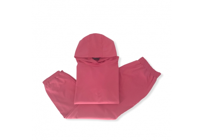 Dokonalá, příjemná a lehká tepláková souprava v nádherné korálově barvě . Souprava je ušitá z příjemné nezateplené teplákoviny s elastanem a mikina je dozdobena kapucí.