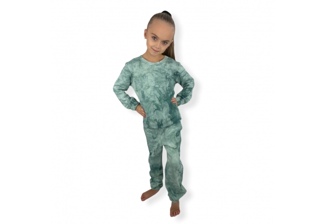 Tepláková souprava zelené barvy s batikou.Je tak dokonalá a nejlepší na ní je,že ji můžou nosit jak kluci,tak ale i holky.